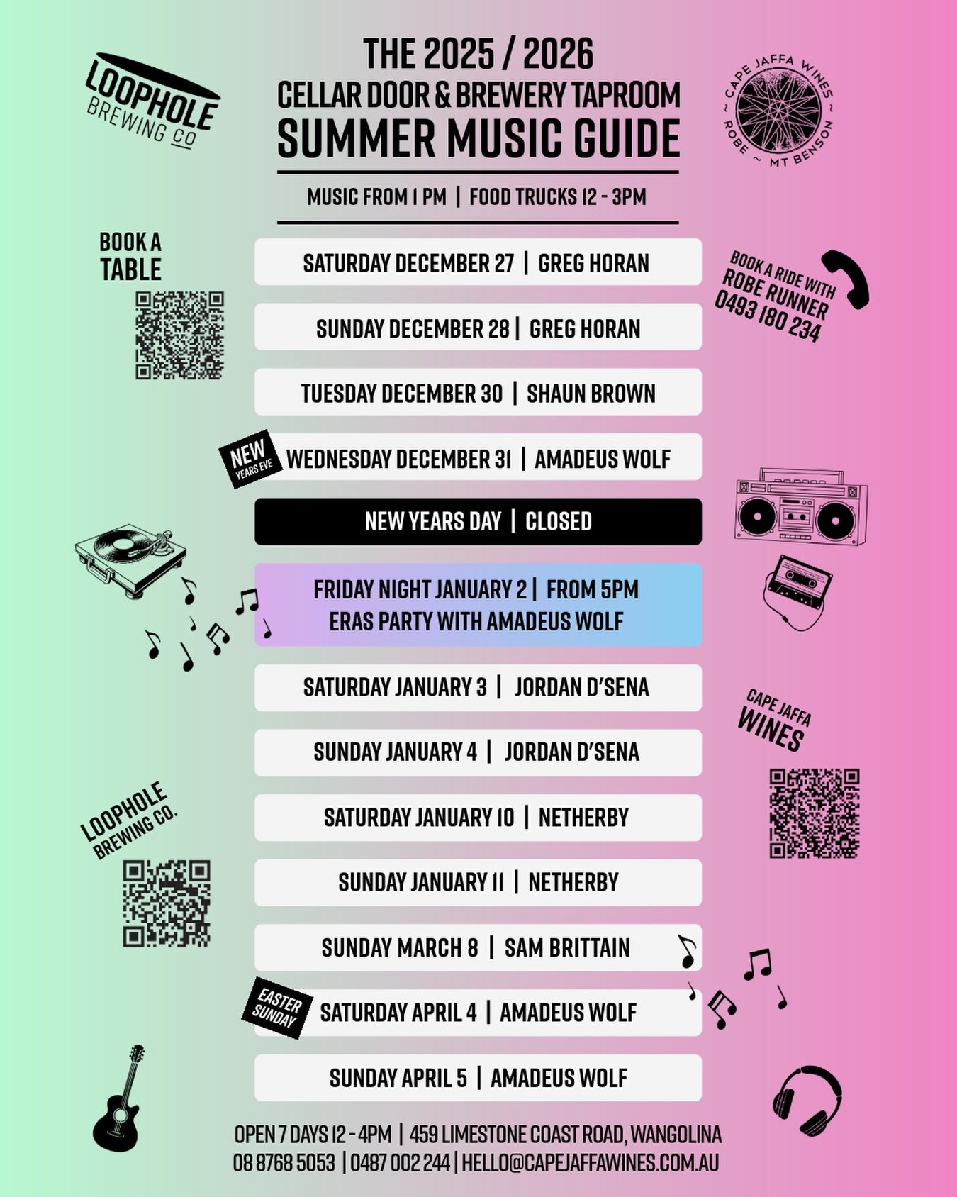 Live Music Events | Family & Pet Friendly. Wine Flight Tastings, Grazing Board Cheese Platters, Loophole Brewing Co. Beer Paddles and more ~ Just 20 minutes drive from Robe⦠-